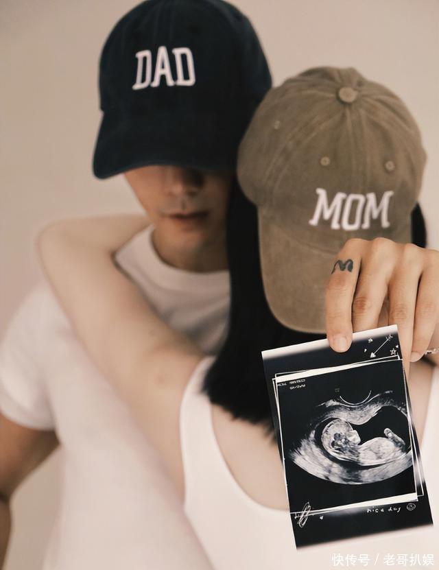 配图中有B超的合影,也有孕期的合影,还有他们分别抱着宝宝的特写。 照片中何女士的的孕肚明显,他在身旁亲密的环抱着她。